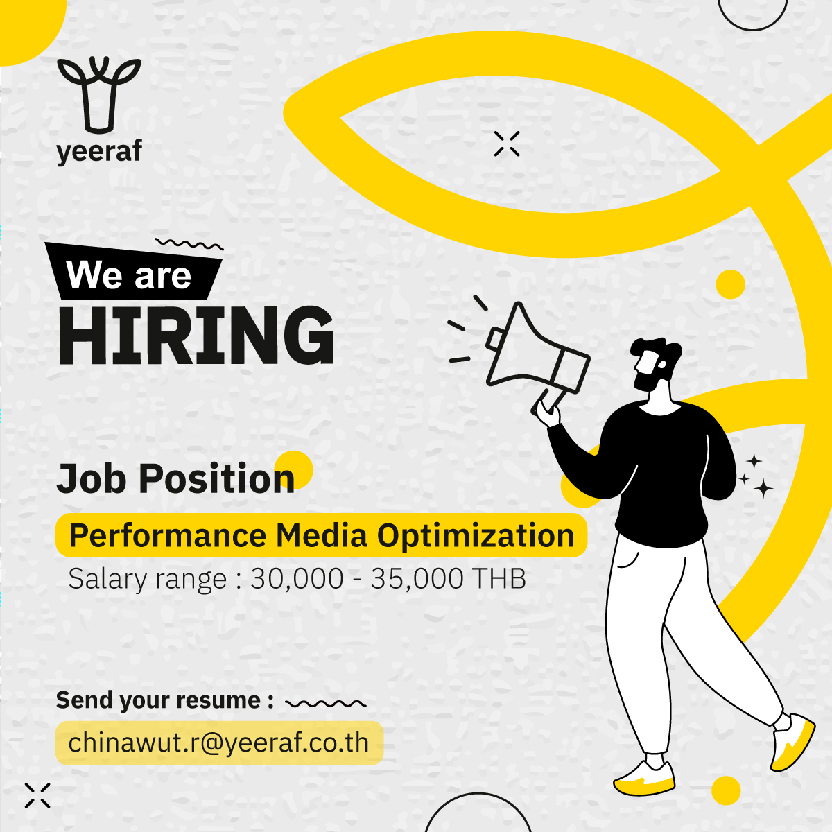 บริษัท ยีราฟ จำกัด (Yeeraf Co.,Ltd.) เราเปิดรับสมัครเพื่อนร่วมทีม ตำแหน่ง Performance Media Optimization